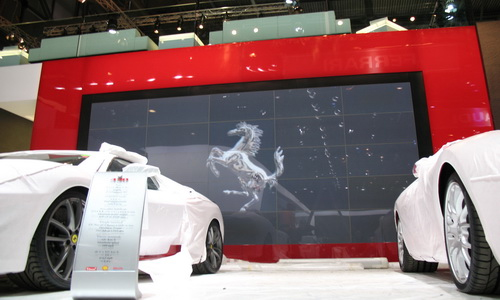 Una installazione plasma seamless imponente ed elegante fa da sfondo alla bellezza delle vetture della grande marca italiana.