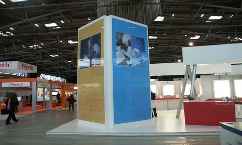 Cubo videowall di 4 pareti 2x9 composte da moduli plasma seamless.